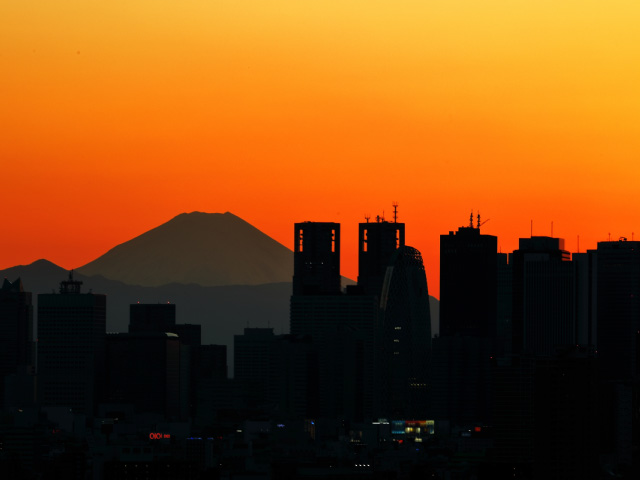 20年前はお話しした通り、富士山が夕焼けの中で黒々とした三角のシルエットを見せておりました。